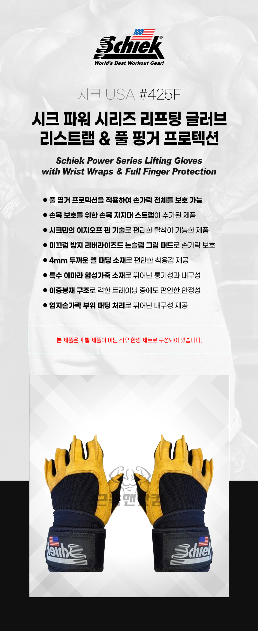 SCHIEK 시크 425FULL 파워 시리즈 리프팅 글러브(리스트랩&풀 핑거 프로텍션)