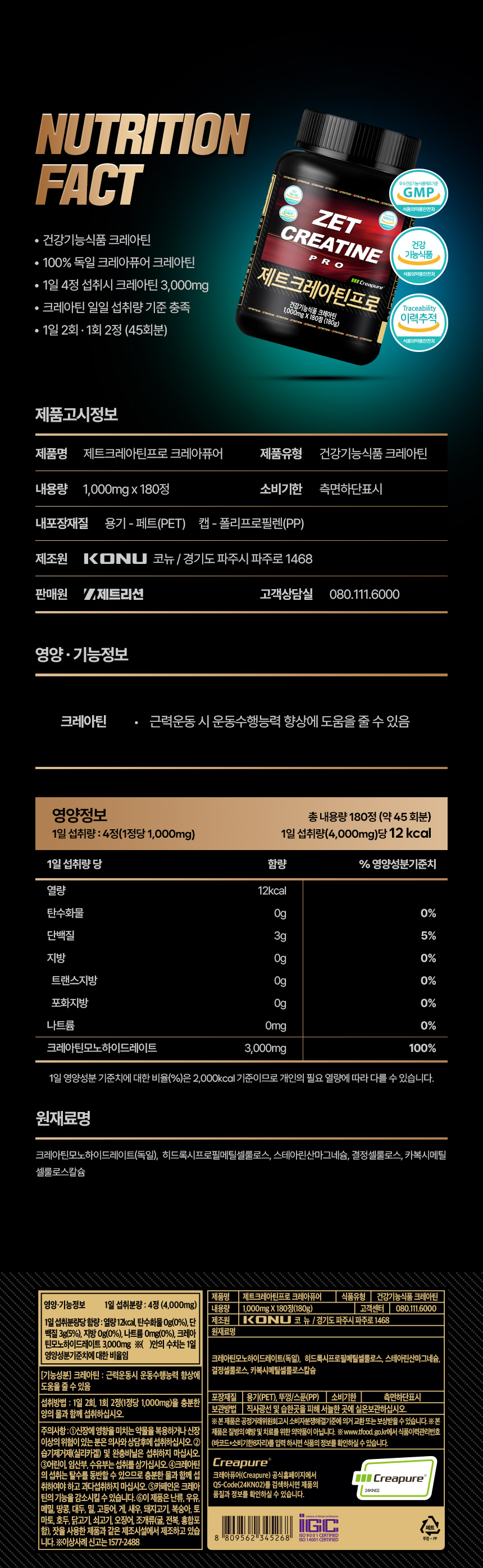 제트크레아틴프로 1000mg x 180정